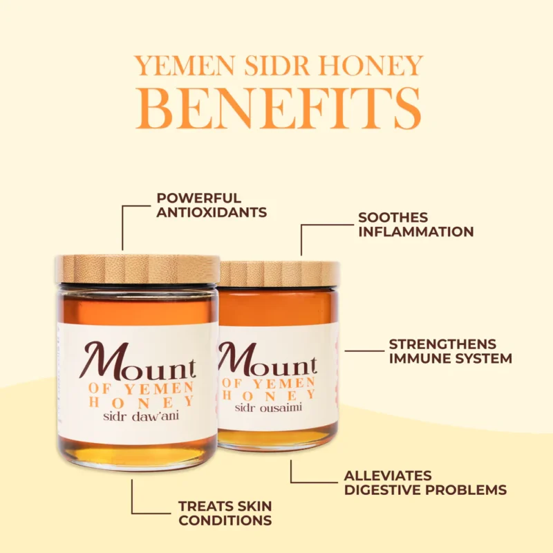 What is Sidr honey? Sidr honey is a rare and rich type of honey produced by bees that feed on the nectar of Sidr trees native to the Middle East. It is known for its unique flavor and potential health benefits. What is Sidr Ousaimi special? The mountainous Ousaim Valley region in Hadhramaut, Yemen has been home to wild Ancient Sidr trees for centuries.